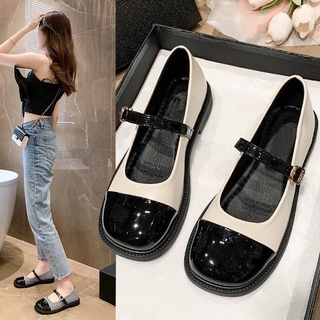 Giày bệt tiểu thư Mary Jane quai cài vá mũi chất da mềm êm chân mã V1