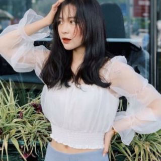 Áo bánh bèo tiểu thư Croptop tay dài Hàn Quốc sang chảnh A112