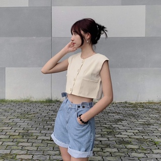[Augustcloth] Áo gile cổ tròn 1 bông hoa