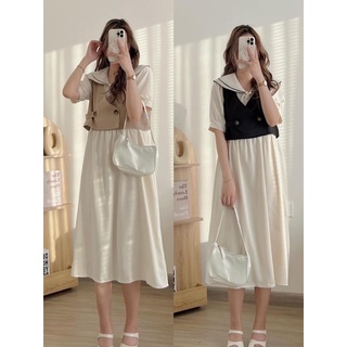 Set váy dài kèm gile cổ thuỷ thủ VIDRESS