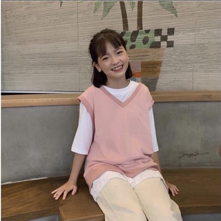 Áo gile sweater nữ form rộng cổ V phong cách Hàn