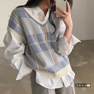 Hàng Sẵn_ Áo gile len dệt kim mềm mịn phong cách retro Hadu shop
