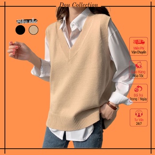 [Nowship2h] Áo gile len trơn Unisex Vintage Áo len không tay cổ V cá tính thời trang thu đông - Mã TA004