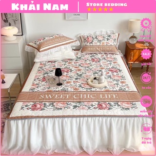 Chiếu Điều Hòa Cao Su Viền Bèo Công Chúa Điệu Đà, Chiếu Cao Su Phủ Bèo Ren Mẫu Mới 2022 (tặg kèm 2 vỏ gối đầu)