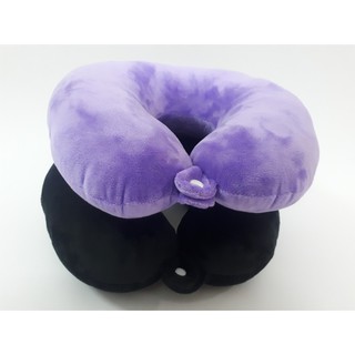 Bộ 2 Gối đỡ cổ du lịch chữ u có dây treo và nút cài - Màu Tím, đen