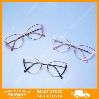 (KIQI-FASHION) COD Kính Mắt Mèo Gọng Kim Loại Chống Ánh Sáng Xanh Phong Cách Cổ Điển Mới Cho Nữ