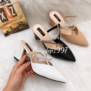 Giày cao gót mũi nhọn gót vuông 7 phân quai đính đá sang chảnh nữ tính mã M030303