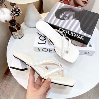 (Ảnh thật) Dép guốc cao gót nữ 4.5cm mũi vuông quai xỏ dây ngang