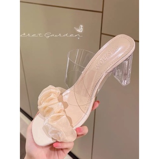 Giày guốc nữ 2 quai ngang gót trong suốt 7cm thời trang MYSS - SU91