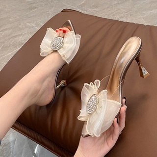 Dép Cao Gót Quai Trong Suốt Đính Nơ Thời Trang Mùa Hè Dành Cho Nữ
