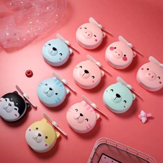 quạt gương hình thú có đèn led mini cằm tay siêu dễ thương, Quạt mini kèm gương và đèn led hình siêu cưng