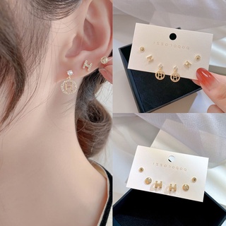 Bộ Khuyên Tai Chữ H Đính Đá Zircon Phong Cách Hàn Quốc Thời Trang