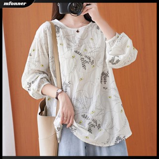 Áo Sơ Mi Cotton Lanh Chui Đầu Cổ Tròn Thêu Họa Tiết Xinh Xắn Thoải Mái Cho Nữ