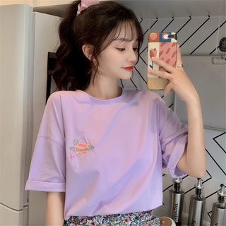 Jiashucheng Áo Ngắn Tay Thêu Hình Hành Tinh Màu Tím Thời Trang Mùa Hè Dễ Phối Đồ Dành Cho Học Sinh