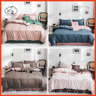 Chăn Ga Gối Đệm ❤️ lụa sumoi decor phòng ngủ cotton lụa màu hồng dùng được hai mặt tặng kèm vỏ gối ôm Mượt Decor