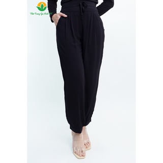 Quần dài nữ Việt Thắng đen trơn bo gấu chất lanh - Q07.2304