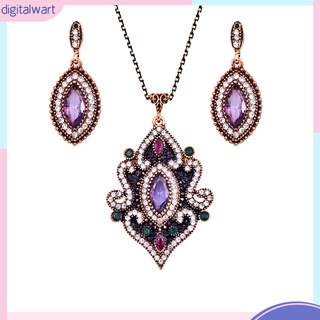 Bộ Vòng cổ + Bông Tai Hình Hoa Đính Kim Cương Giả Phong Cách Ấn Độ