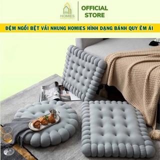 Đệm Ngồi Bệt HOMIES Bedding & Décor Hình Bánh Quy Vải Nhung Mềm Mại Êm Ái - Kích Thước 45cm x 40cm