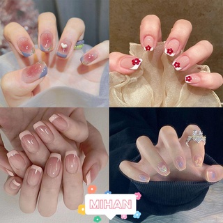 MIHAN1 24pcs/Box Press On Nails Wearable Artificial Fake Nails Short Round/Square Head False Nails Detachable Manicure Tool Full Cover Heart Bow Nail Tips