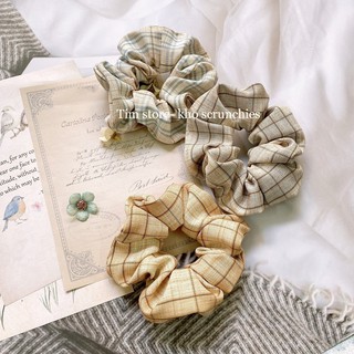 Dây cột tóc scrunchies vải caro retro màu cổ điển TÍM STORE