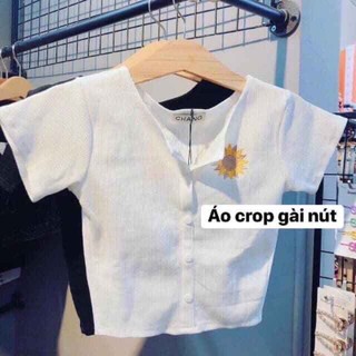 Áo croptop nữ phối nút thêu hoa cúc siêu xinh - 25 Store