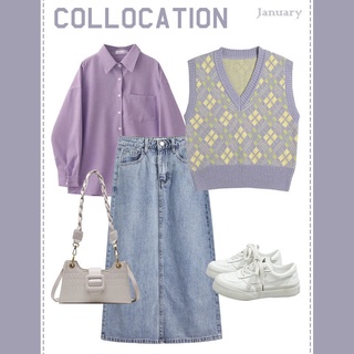 Set of Shirts+Denim Skirts+Knitted Tops Korean Fashion New Model 2022 For Women