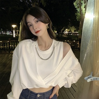 set áo sơ mi tay dài phối chain cổ có thể tháo rời(hinh thật cận chất)(bb20)
