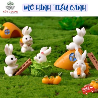 Mô hình tiểu cảnh ♥️ Mô hình thỏ con thu hoạch cà rốt trang trí bàn làm việc tiểu cảnh, sân vườn, sen đá