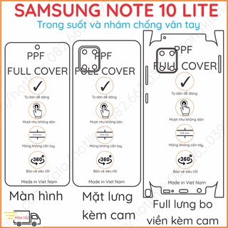 Dán PPF Samsung Note 10 lite loại trong, nhám dành cho màn hình, mặt lưng, full viền