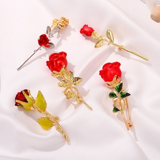 Ghim Cài Áo Kim Loại Hình Hoa Hồng Đỏ
