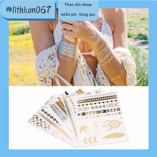 Lithium067 5pcs Mixed Metallic Golden Silver Colorful Pattern Temporary Disposable Arm Tattoo Stickers Hình Dán Xăm Họa Tiết Hình Xăm Dán Tạm Thời