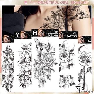 Hình Xăm Dán Cánh Tay Chống Thấm Nước Họa Tiết Hoa Trắng Đen Phong Cách Âu Mỹ
