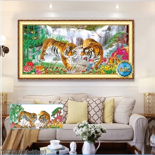 Tranh đính hổ nhị hổ song hùng KT:120x60cm.tranh gắn đá chưa gắn.
