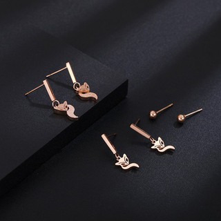 Bộ 3 Đôi Bông Tai Hồ Ly Titan Ko Đen TT 2826