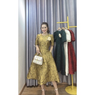 Váy Gấm Họa Tiết Hoa Nổi Tặng Kèm Hoa Cài Sang Trọng Kandy V54