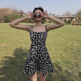 Đầm voan 2 dây in họa tiết hoa cúc xinh xắn cho nữ
