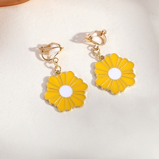 Khuyên Tai Hoa Cúc Vàng Tráng Men Không Xỏ Lỗ Thời Trang Dành Cho Nữ