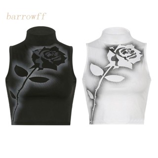 Áo Croptop Không Tay Cổ Lọ In Họa Tiết Hoa Hồng Phong Cách Harajuku Cổ Điển Dành Cho Nữ