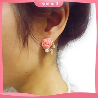 Khuyên tai hoa hồng đính đá và ngọc trai giả thanh lịch dành cho nữ