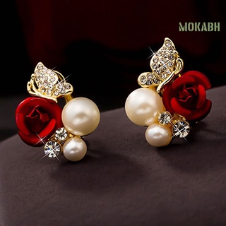 Bông Tai Hình Hoa Hồng Đính Ngọc Trai Giả Bằng Hợp Kim Tinh Tế Thời Trang Dự Tiệc
