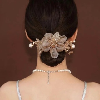 Dây Cột Tóc Đính Hoa Vải Màu Champagne Phong Cách Hàn Quốc Thời Trang Mùa Hè Cho Nữ