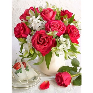 Bộ Tranh Đính Đá Họa Tiết Hoa Hồng Đỏ Độc Đáo Diy Dùng Trang Trí