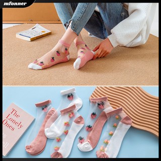 Vớ Cổ Thấp Mỏng Thoáng Khí In Họa Tiết Hoa / Dâu Tây Màu Sắc Tương Phản Cho