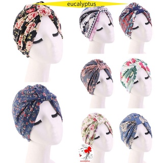 Mũ trùm đầu vải satin cotton mềm mại xếp ly thắt nút in họa tiết hoa cho nữ
