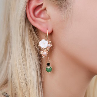 Khuyên Tai Dáng Dài Đính Hoa Và Ngọc Trai Phong Cách Trung Hoa