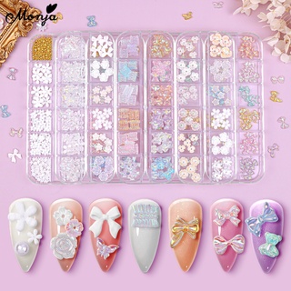 MONJA Phụ Kiện Trang Trí Móng Tay Nghệ Thuật 3D Nhiều Màu Sắc Hình Nơ/Gấu/Hoa Trà/Hoa Trà Lấp Lánh Xinh Xắn