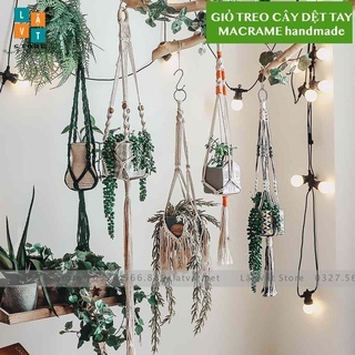 Chậu Hoa dạng treo, túi lưới Macrame dệt tay Monternet handmade - giỏ treo chậu cây quà tặng, trang trí decor home