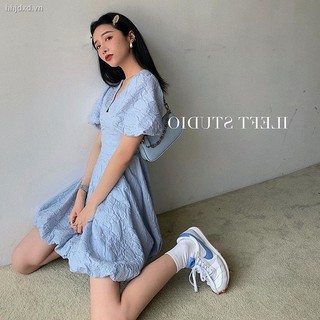 Đầm Tay Ngắn Phồng Màu Trơn Phong Cách Pháp Hoài Cổ Thời Trang 2021 Nữ Tính