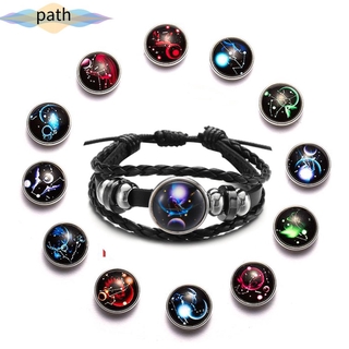 Vòng Tay Da Mặt Kim Loại Khắc Biểu Tượng 12 Cung Hoàng Đạo