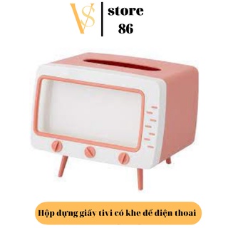 Hộp Đựng Giấy, Hộp Đựng Khăn Giấy Hình TiVi Có Khe Để Điện Thoại Tiện Lợi